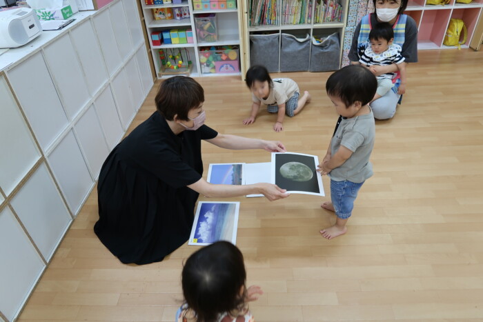 ECCジュニア英語教室でした。空・海・月・虹の単語を教えてもらいましたよ。