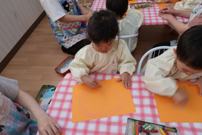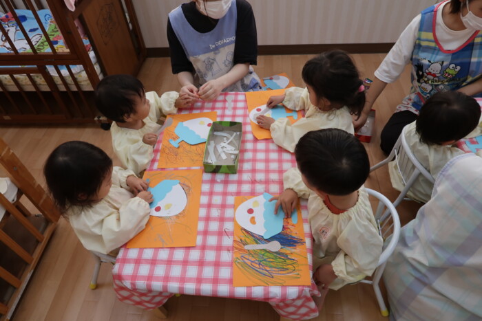園に飾るかき氷を作りました。たくさんお絵描きができましたよ。
