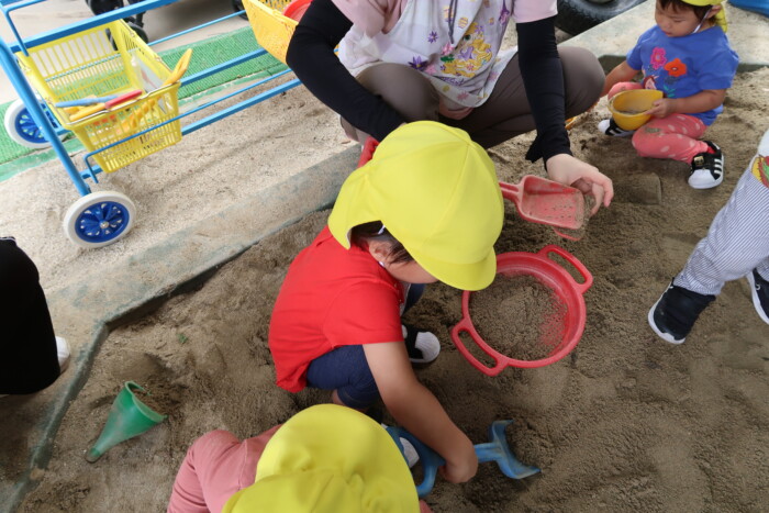 神宮東保育園に行きました。初めての場所で,少し戸惑っていましたが元気いっぱい楽しく遊べましたよ。
