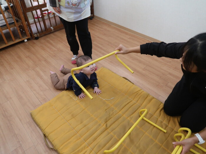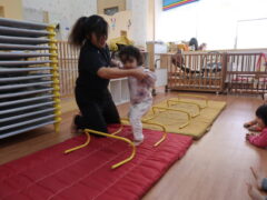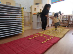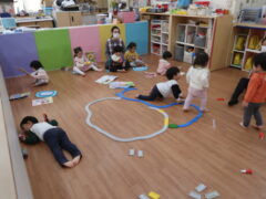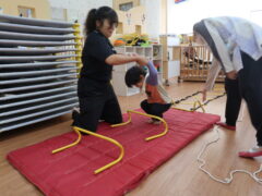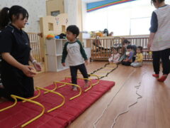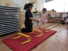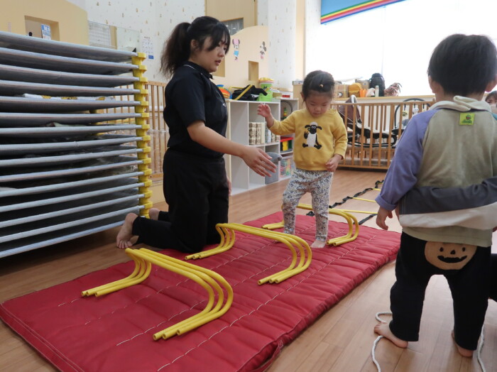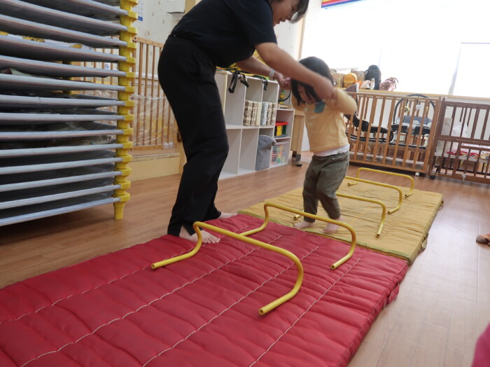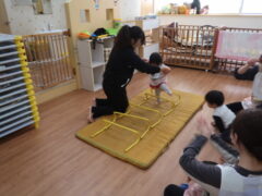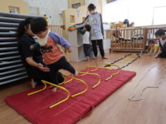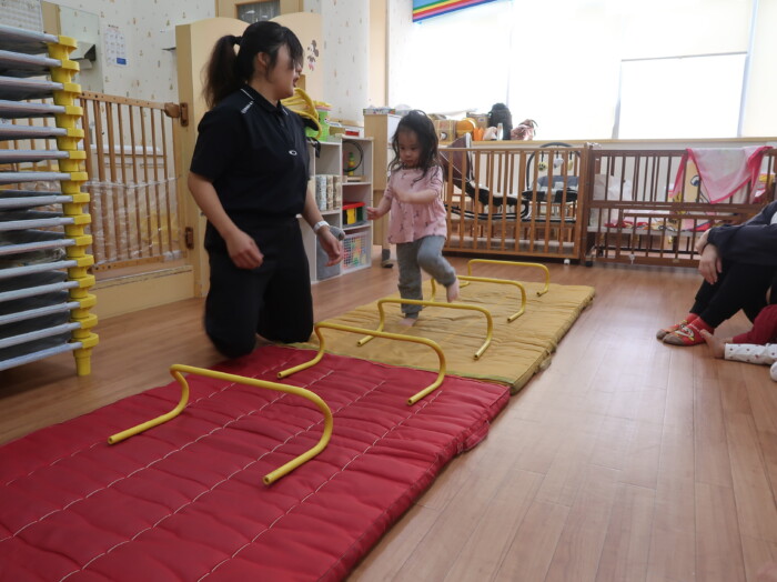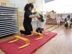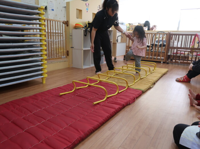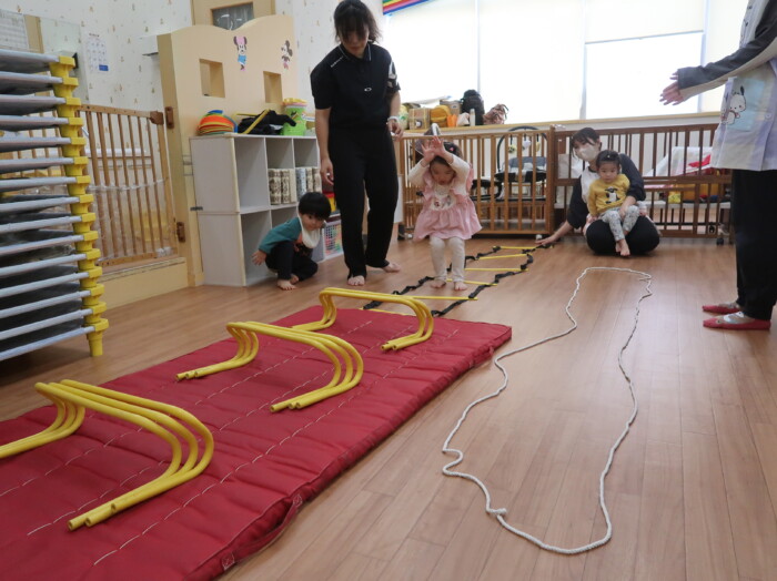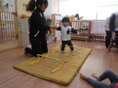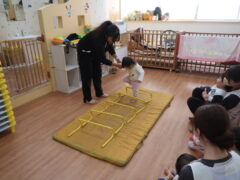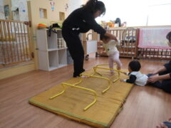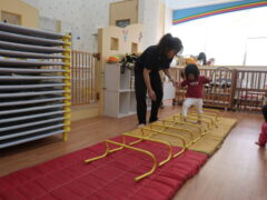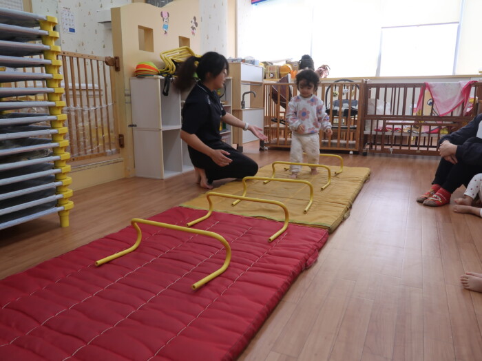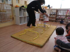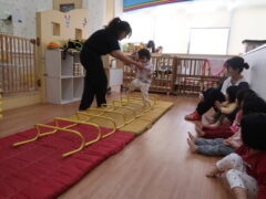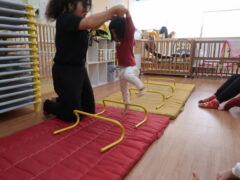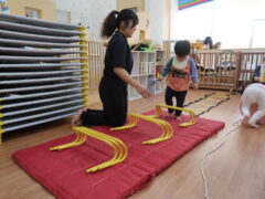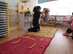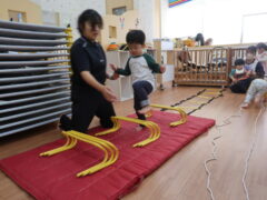 体操教室でした。ハードルを使って体を動かしましたよ。