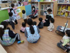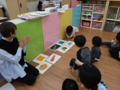 ECCジュニア英語教室でした。色の単語を教えてもらいましたよ。