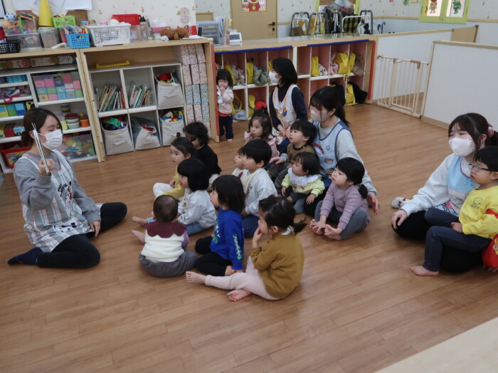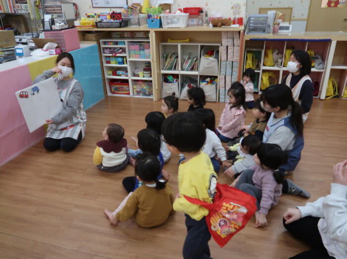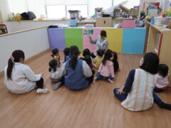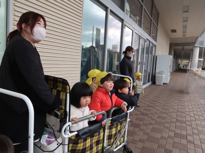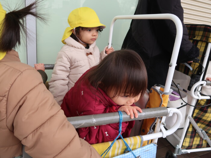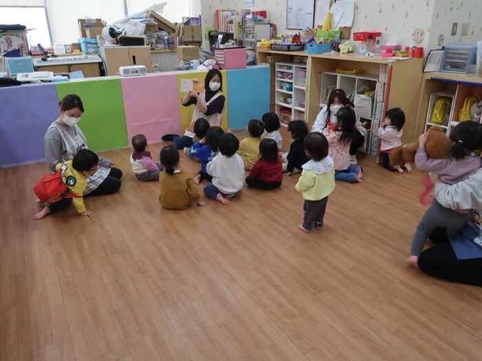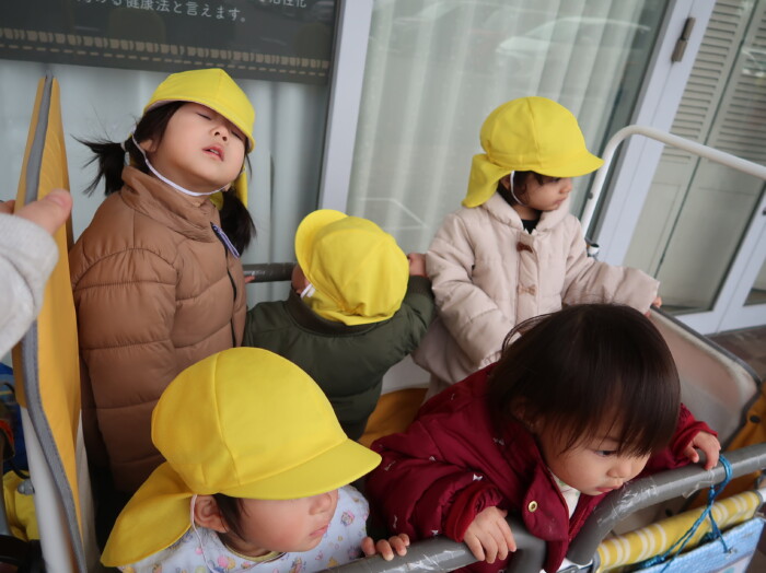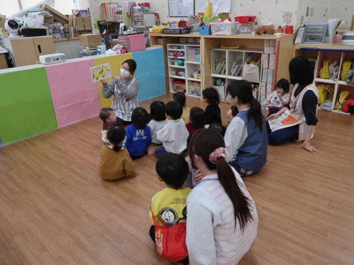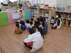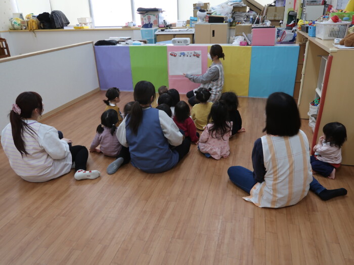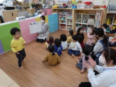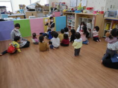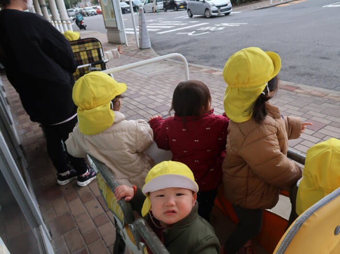 お部屋で絵本を見てからお散歩に行きました。