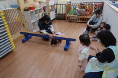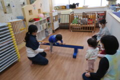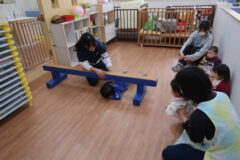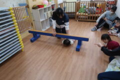 体操教室でした。平均台に挑戦しましたよ。