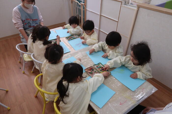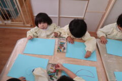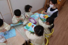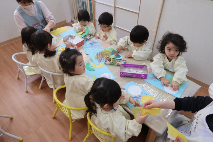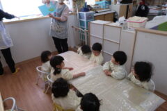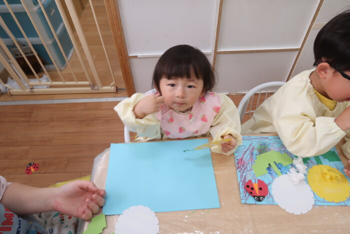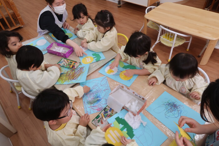 身体測定と園に飾るたんぽぽを作りました。