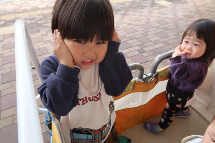今日はお部屋で働くくるまを見たりエビカニクスを踊ったりしましたよ。