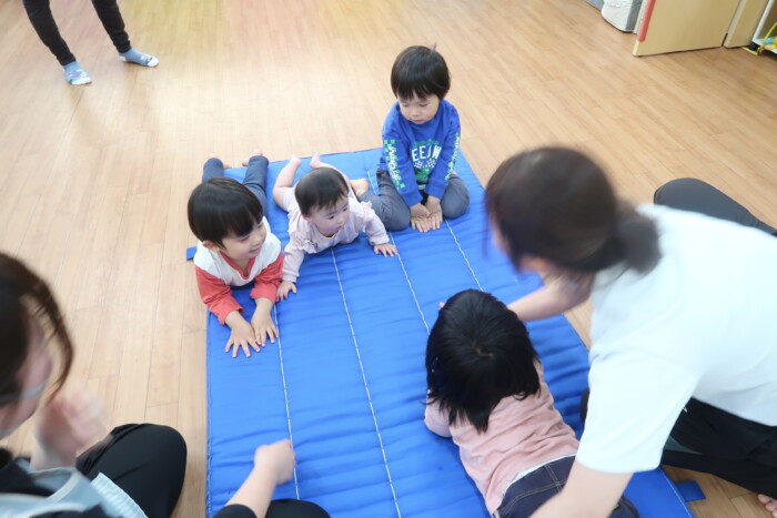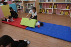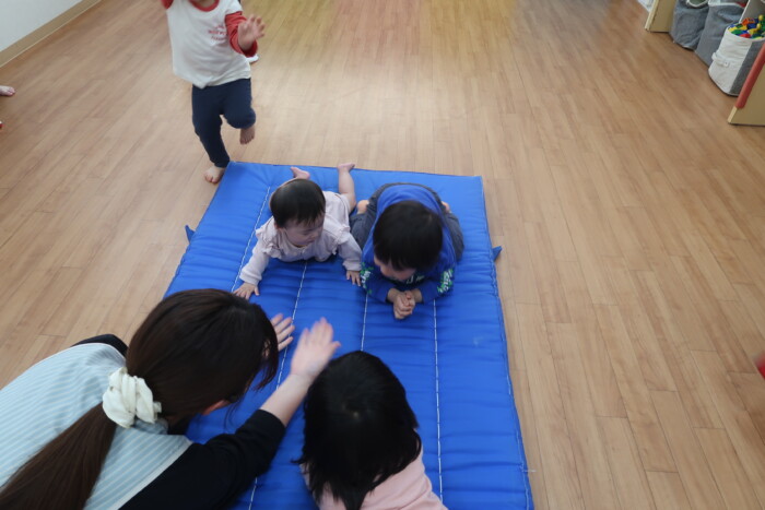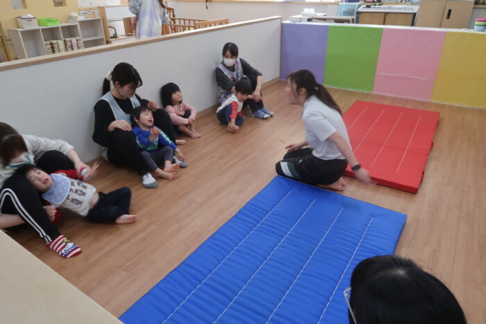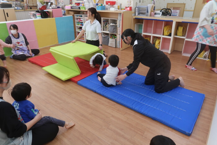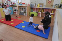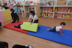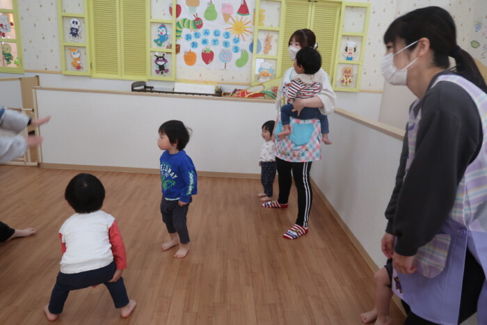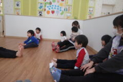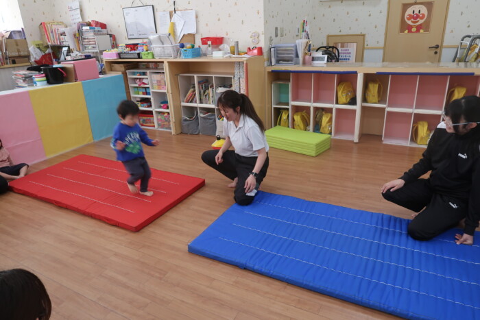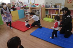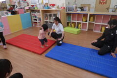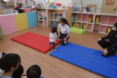 体操教室でした。体をたくさん動かしてとても楽しく参加していましたよ。